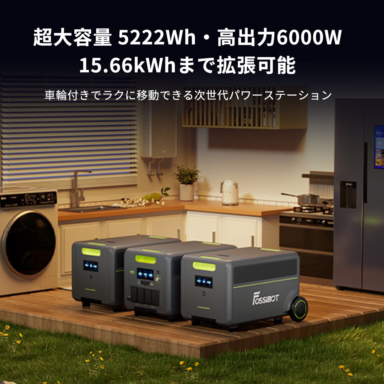 防災・停電対策から業務用途まで対応。FOSSiBOTは、超大容量・高出力を実現した次世代ポータブル電源 「F7200(容量5222.4Wh/定格出力6000W)」 を新発売いたしました。