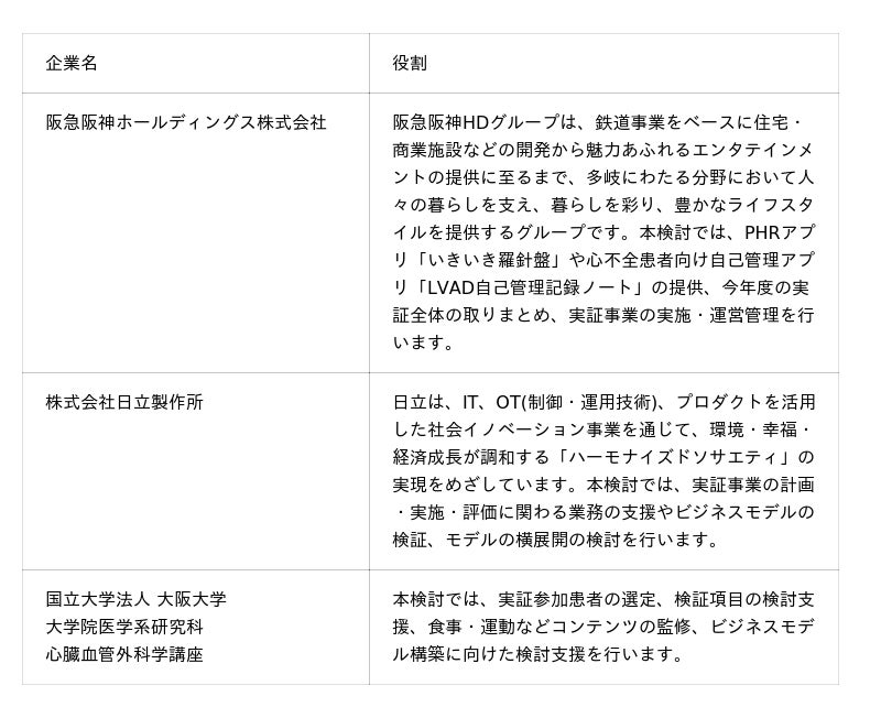 阪急阪神ホールディングス株式会社(以下、阪急阪神HD)と株式会社日立製作所(以下、日立)、国立大学法人大阪大学大学院医学系研究科 心臓血管外科学講座は、超高齢社会における持続可能な医療モデルの構築をめざし、健康・医療・介護に関する情報を集約したPHRアプリ※1などのデジタル活用による「在宅心不全自己管理支援サービス(以下、本サービス)」の構築および社会実装をめざした共同検討(以下、本検討)を開始しましたのでお知らせします。