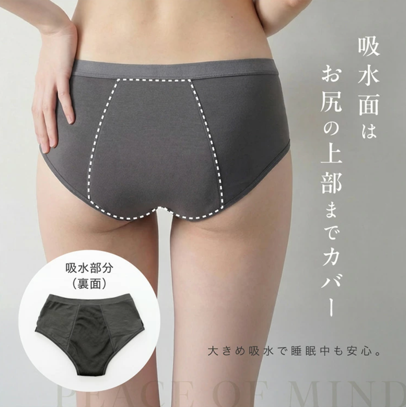 - 高吸水設計(約90ml)ナプキン不要で過ごせる安心設計。就寝時の伝い漏れリスクも軽減し、良質な睡眠をサポート。