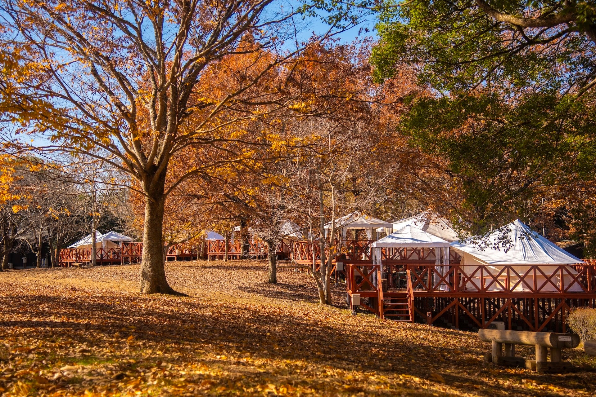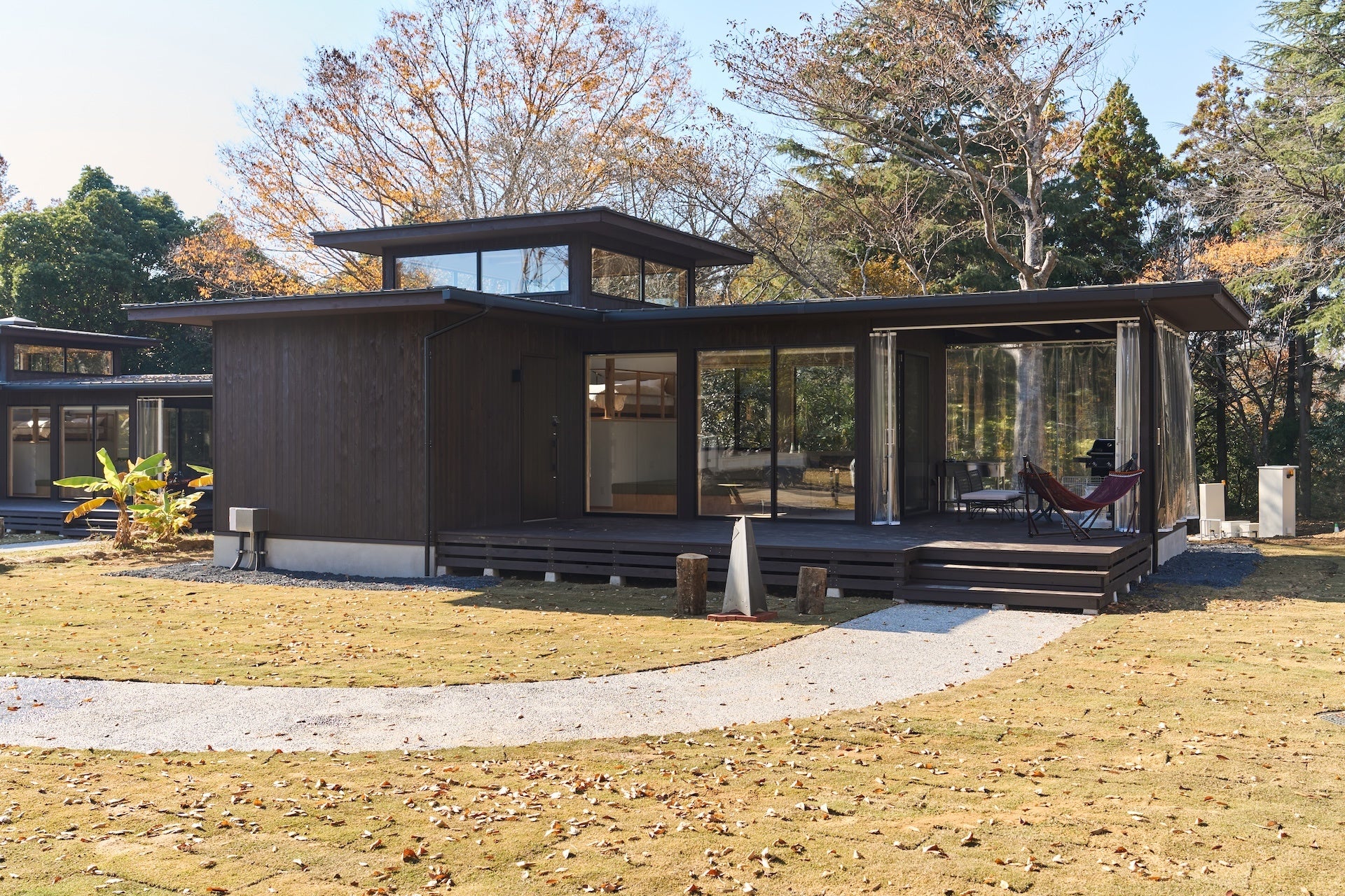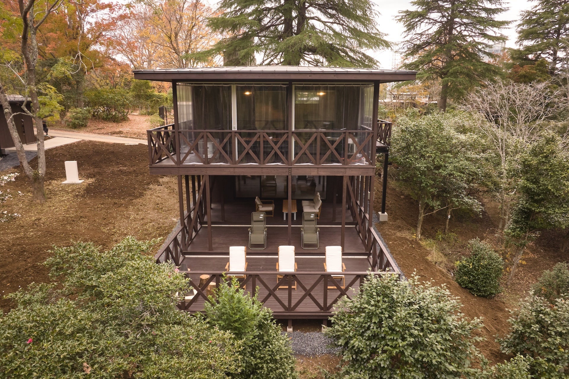 メタセコイアテラス 全6棟 メタセコイアの木々に囲まれた絶好のロケーション。朝はやわらかな木漏れ日と緑の香りに包まれながら目覚め、自然と一体になれる贅沢な体験が叶います。