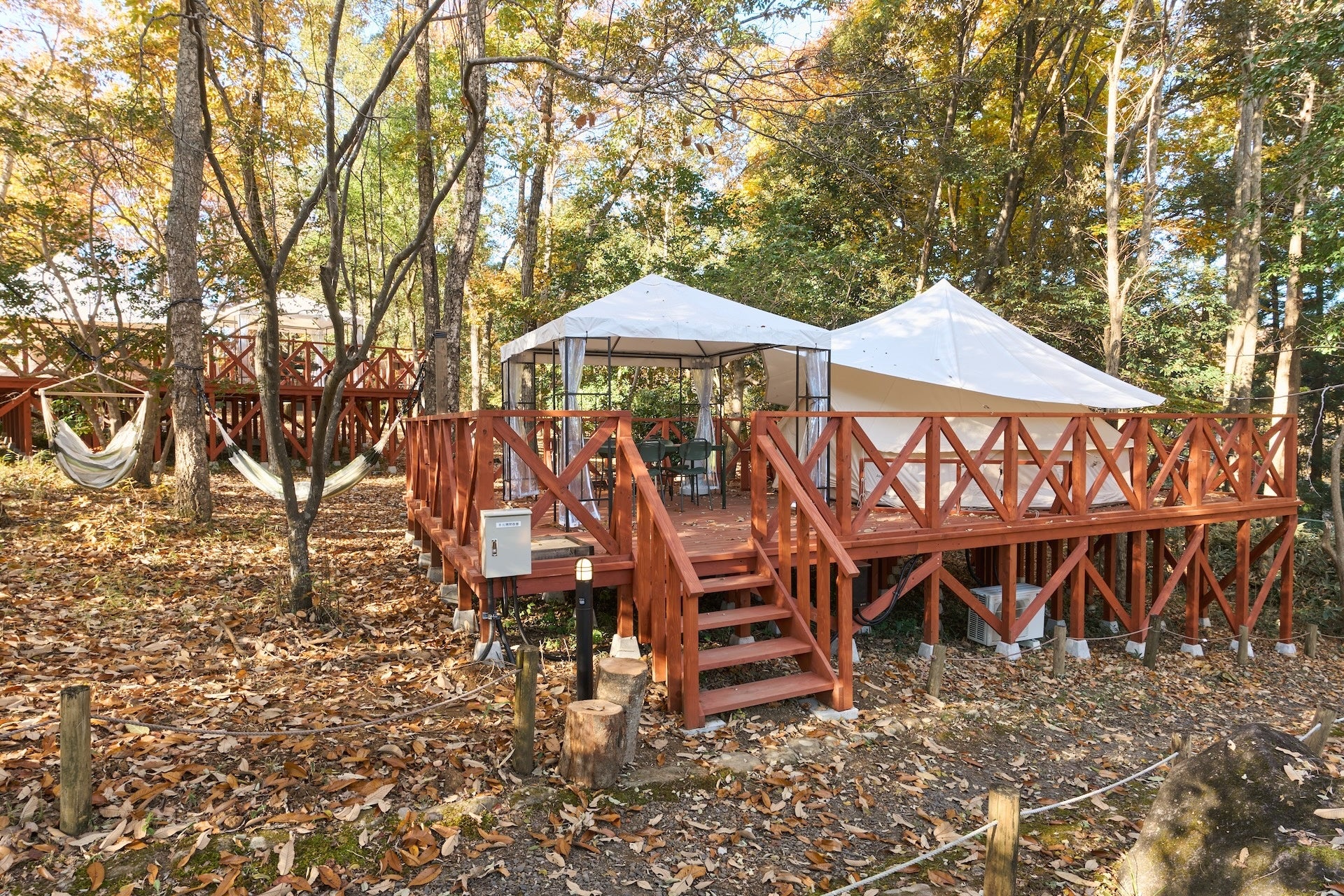 ハンモックテラス 全3棟 ウッドデッキや宿泊エリア内にドイツのプレミアムハンモックブランドLA SIESTA(ラ シエスタ)のハンモックを3棟限定でご用意。空が抜け、自然や夜空を満喫できるロケーションです。