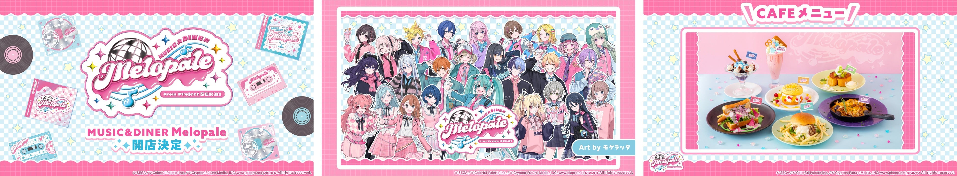 「『プロジェクトセカイ』の世界でオープンしているカフェ」をコンセプトとした、音楽好きが集まるダイナーカフェ「MUSIC&DINER Melopale」が、期間限定で開催することが決定いたしました。キービジュアルは、モゲラッタさん(@mogelatte)にご担当いただいております。