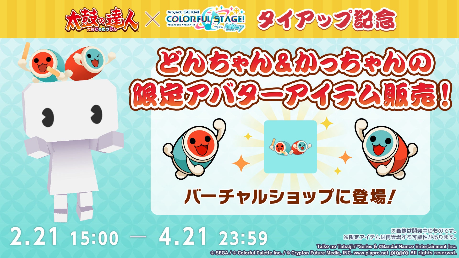 また、『太鼓の達人』(ゲームセンター版)においても、『プロジェクトセカイ』とのコラボ企画を予定しております。今後の続報をお楽しみに!