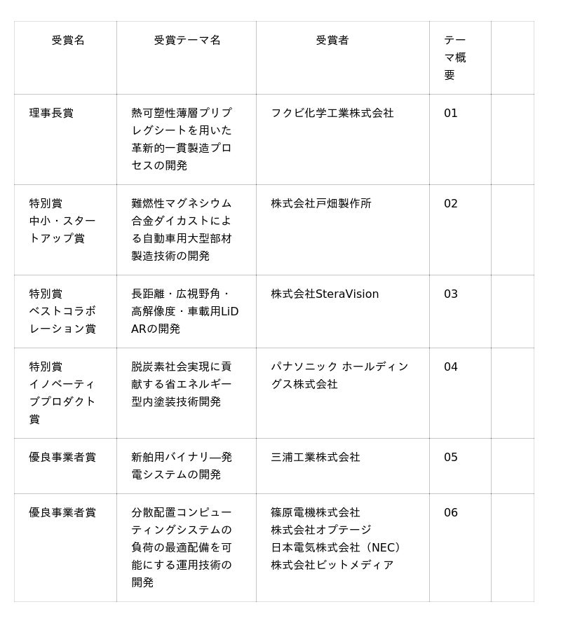 ※受賞者は、採択時のテーマ概要資料に記載されている事業者と異なる場合があります。