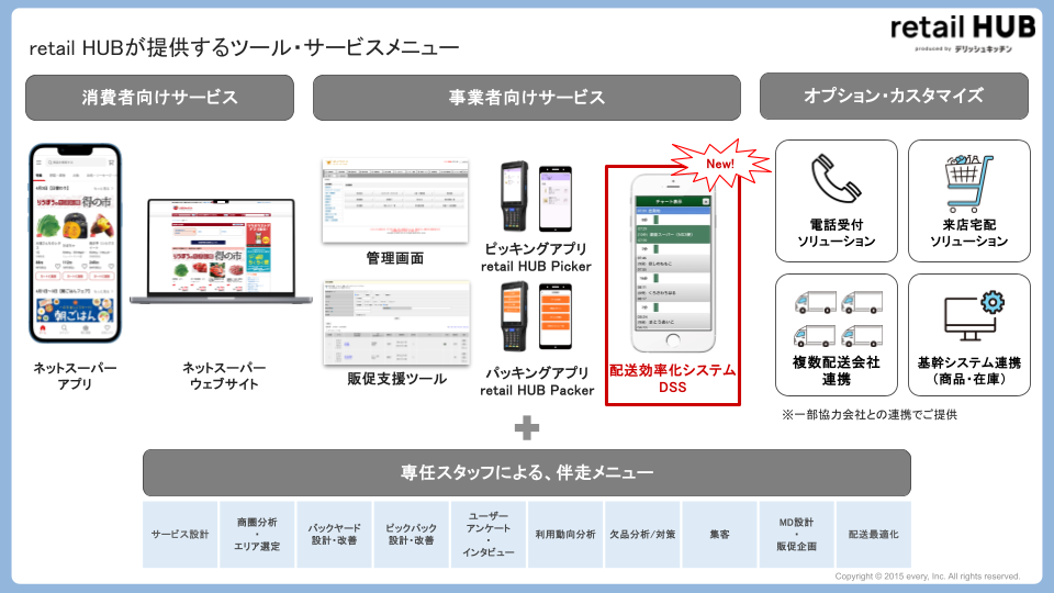株式会社エブリー(本社:東京都港区、代表取締役:吉田 大成)が運営する『retail HUB』は、セイノーラストワンマイル株式会社(本社:東京都中央区、代表取締役社長:河合 秀治)が提供する配送管理システム「DSS(Delivery Solution SaaS)」の取り扱いを開始します。 これにより『retail HUB』は、ネットスーパーの受注から配送管理までを一気通貫で支援する体制を構築し、クライアント企業の事業黒字化を後押しします。