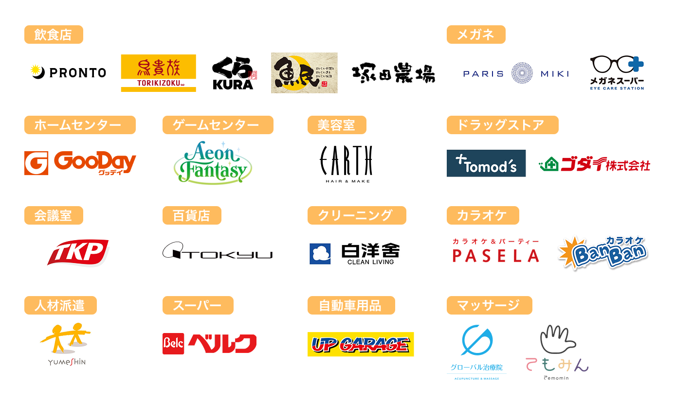 カンリー福利厚生(フクリー)掲載クーポン(一部抜粋)