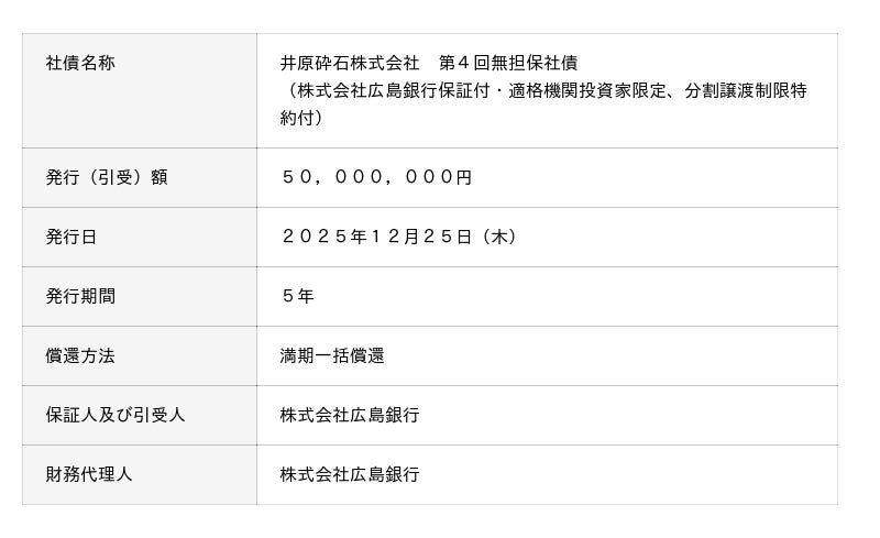 当行は11月27日(木)に、井原砕石株式会社の『SDGs私募債「地域応援型」※』の引受けと財務代理人を務めました。同様に当社の私募債発行を引受けた株式会社広島銀行、株式会社トマト銀行とも連携し、それぞれの私募債発行手数料の一部を使い、一般社団法人mimozaへ当社と当行、株式会社広島銀行、株式会社トマト銀行の連名にて寄附いたします。2月5日(木)10時より、多世代交流拠点「こもれびベース」(井原市井原町1316)にて当社および3行合同で寄贈式を開催いたします。