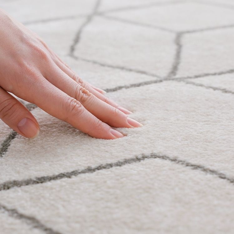 上にカゴを置いて跡がついてしまっても、手で馴染ませればすぐ元通りになります。派手すぎず地味すぎない「ちょうどいい柄」でどんなインテリアにも馴染むので、本当に重宝しています!