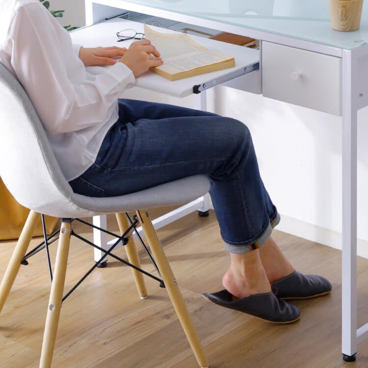 おすすめポイントは、サイズ感の良さです!デスクワークに十分な天板の広さがありながら、お部屋を圧迫しにくいので一人暮らしのコンパクトな空間にも置きやすいのが魅力です。さらに収納力もあるため、デスク周りをすっきり保てるのも嬉しいポイントです。