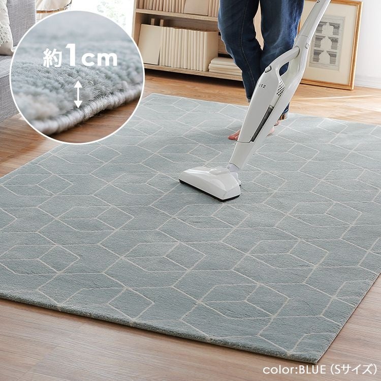 毛足が絶妙な長さで夏は涼しく、冬は底冷えを防いでくれるので一年中これ一枚で快適です。重みがあるため掃除機をかけてもズレたり端が捲れたりせず、足音を吸収してくれるのも嬉しいポイント。