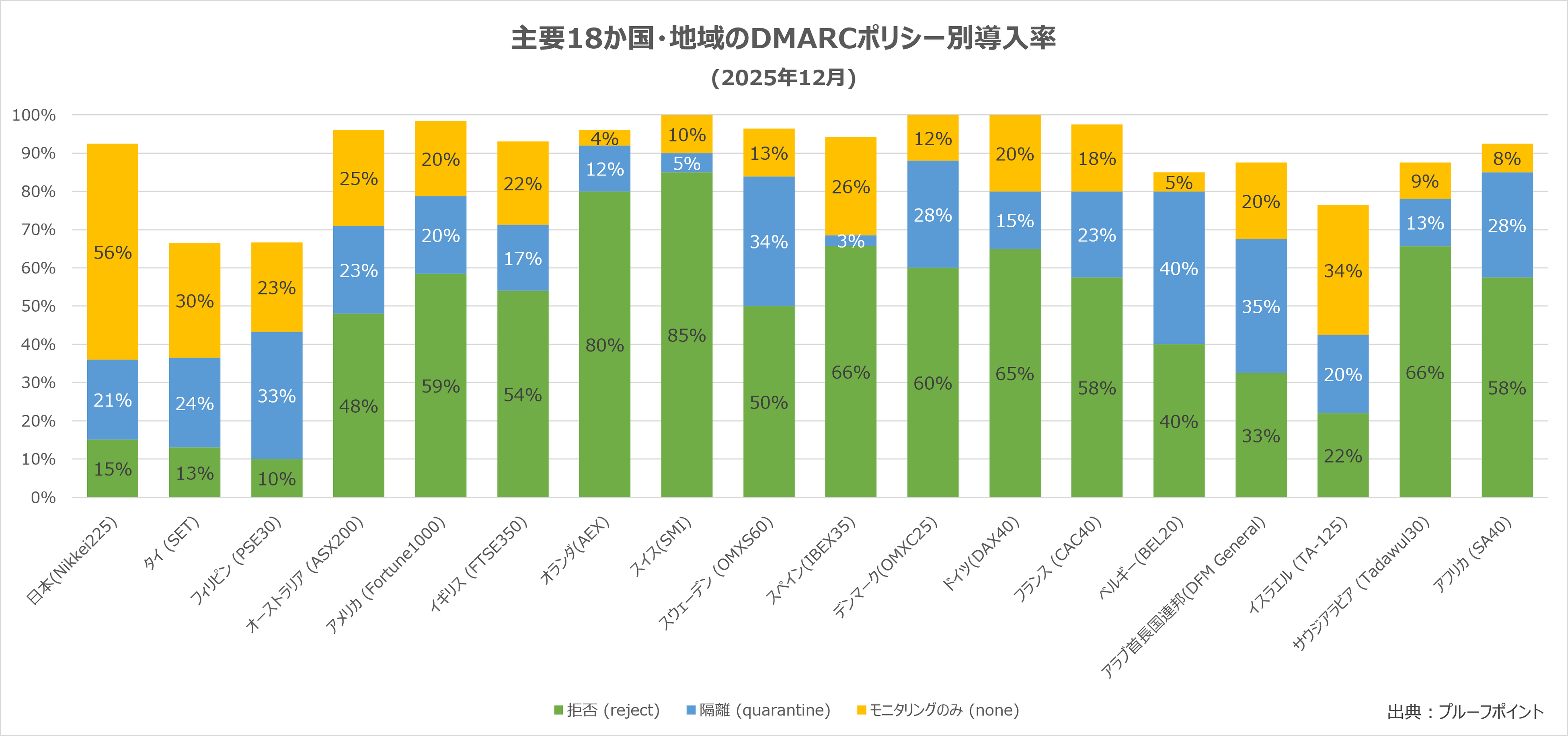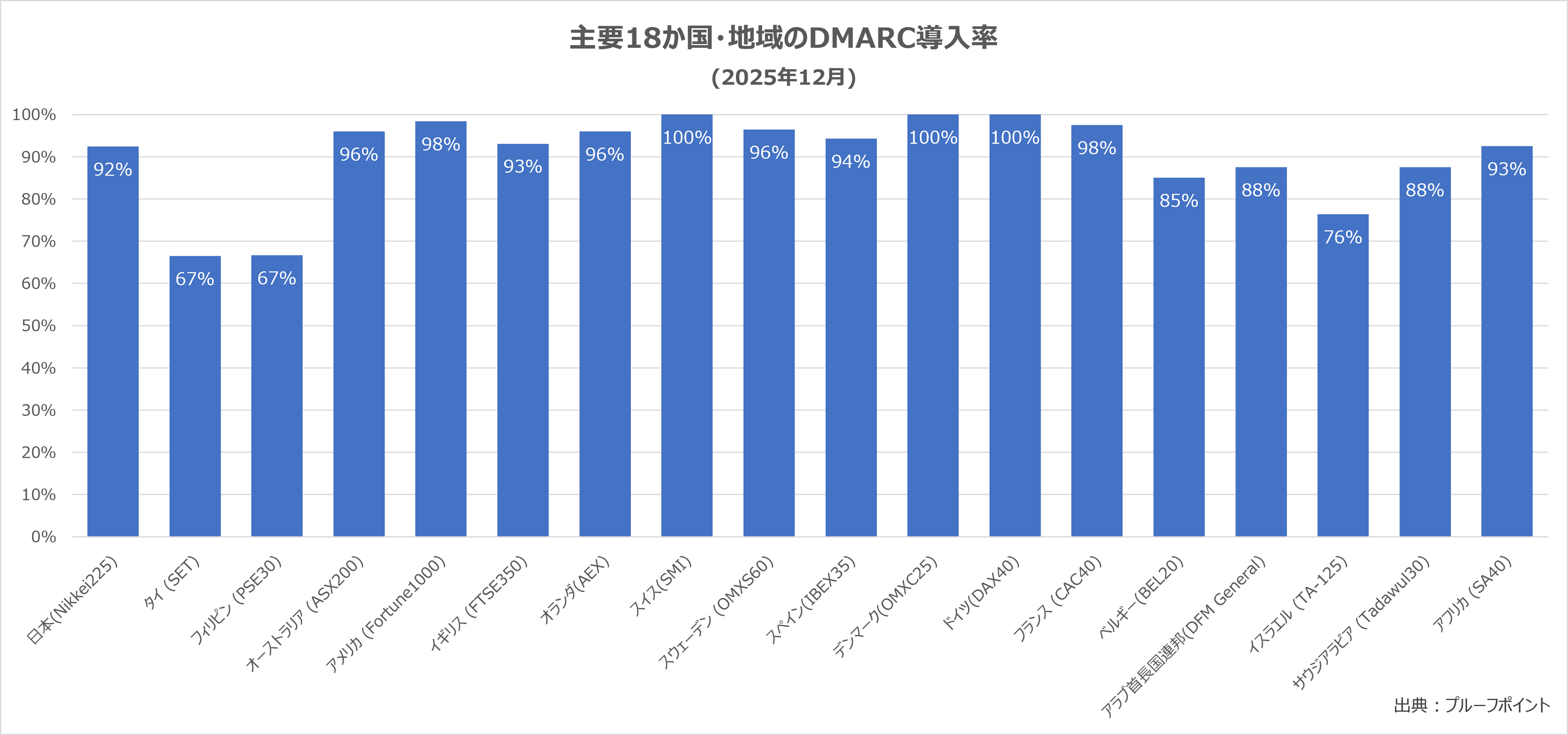 サイバーセキュリティとコンプライアンス分野のリーディング カンパニーである日本プルーフポイント株式会社 (本社:東京都港区、代表取締役社長:野村 健、以下プルーフポイント)は、2025年12月に実施した日本を含む主要18か国の大手上場企業におけるメール認証の調査結果をもとに、メールの安全性に関して分析をおこない、日本における現状と課題、考察をまとめました。