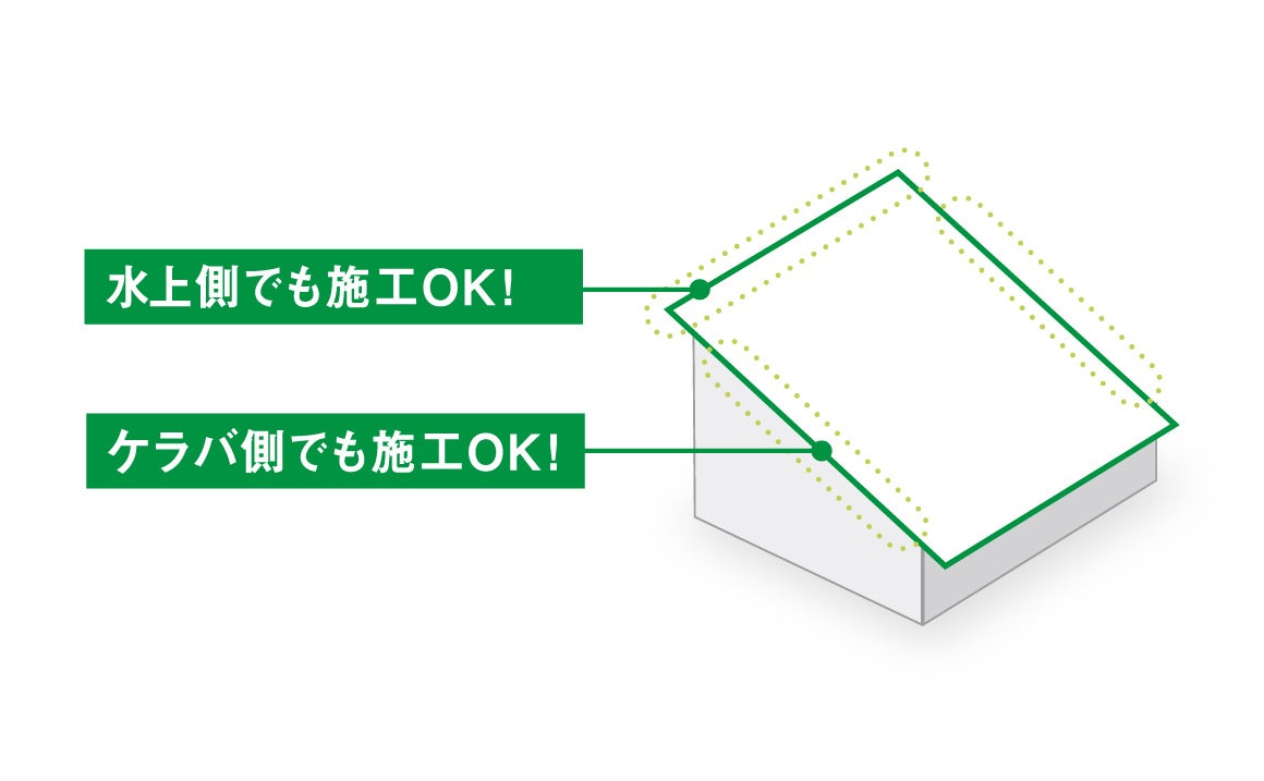 水上側にも、ケラバ側にも安心して使用できます。雨風が吹き込みやすい屋根の水上側・ケラバ側にも安心して使用できます。屋根の全周に施工が可能となり、換気量に悩むこともありません。送風散水試験をおこない、高い水密性能を確認しています。