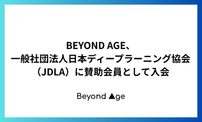 株式会社BEYOND AGE(本社:東京都中央区、代表取締役:市原 大和)は、ディープラーニングの産業活用と人材育成を推進する一般社団法人日本ディープラーニング協会(所在地:東京都千代田区、理事長:松尾 豊)に賛助会員として入会したことをお知らせいたします。
