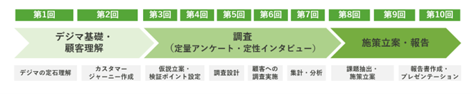 こうした状況を受け、知識と実務のつながりを強化し、研修で得た学びをビジネス成果へ結びつけていく必要性が明らかになってきました。そこで、体系的な知識の習得に加え、自社の実務課題を題材としながら実践的に学べる場として、「デジタルマーケティング講座」を新たに開発しました。本講座を通じて、デジタルマーケティング領域におけるDX推進人財の育成と、グループ全体のマーケティング力向上を目指しています。