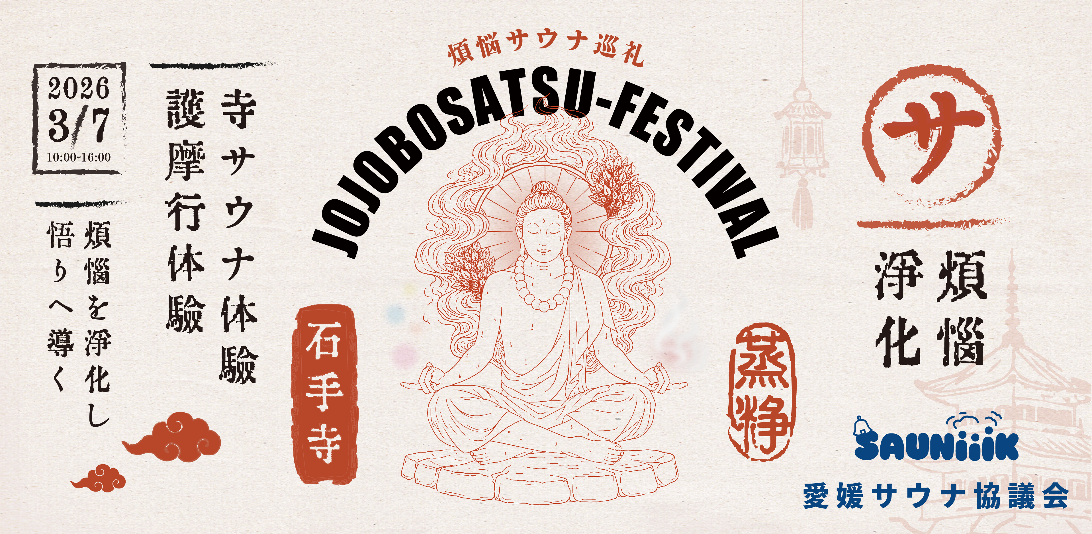 イベント名:煩悩サウナ巡礼 - 蒸浄菩薩祭 @石手寺(寺サウナ×護摩行)日時:2026年3月7日(土)10:00~16:30