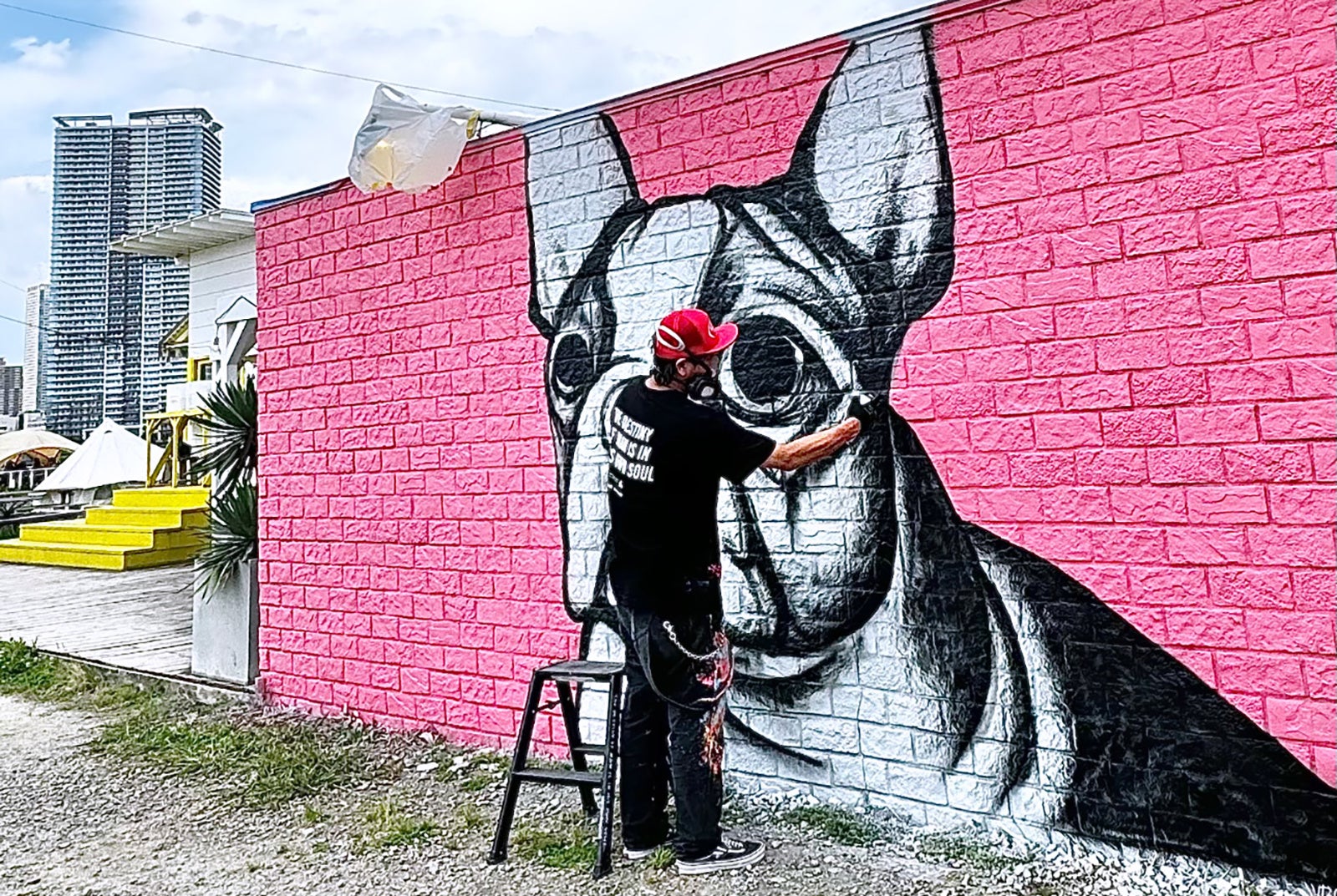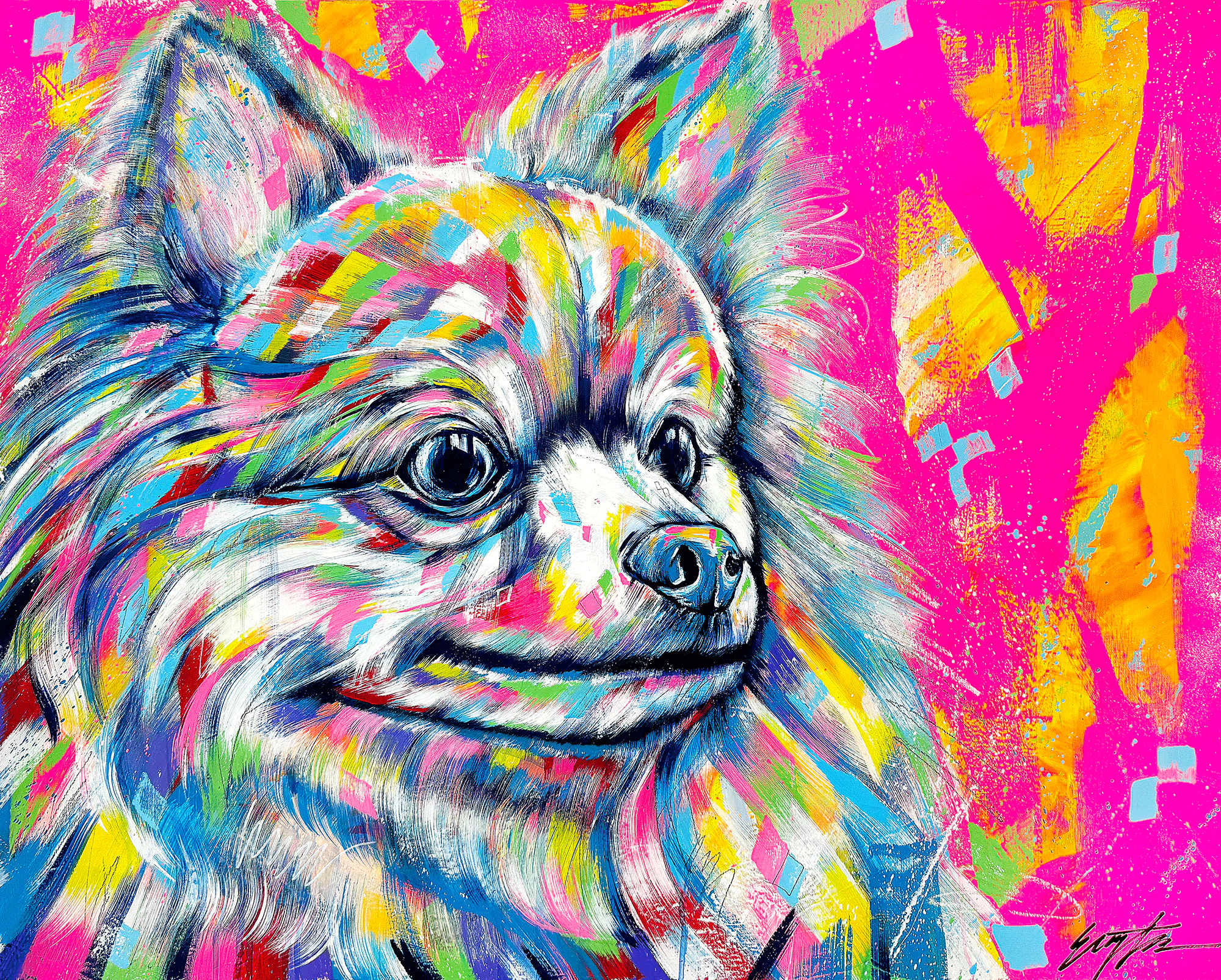 20代の頃、ニューヨークやロサンゼルスのストリートアートに触れ、独自のアートスタイルを確立したEIJI TAMURA DOG ARTは、カラフルでポップなタッチで愛犬たちを描き続けてきました。