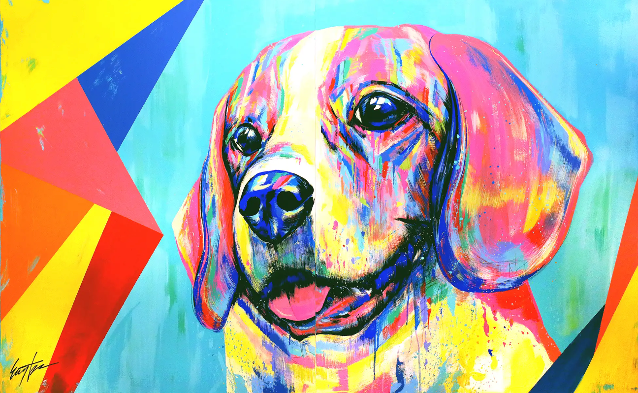 彼の作品は、犬という存在が持つ無償の愛と豊かな表情を、鮮やかな色彩で表現しています。