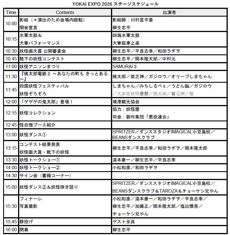 「YOKAI EXPO 2026」 ステージスケジュール