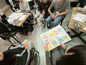 今回のプログラムは「良い未来を創ろう その先の世界を変えよう」をテーマに、10月12日(日)と13日(月)の2日間にわたり実施されました。今年度は7月にもトライアル版を実施しており、10月と合わせて中学1年生から3年生までの生徒が計51名参加しました。今回は、ディスカッションを実施するなかで、傾聴力と発信力のバランスを身に付け、互いの強みを活かした協働の姿勢を育むために学年混成で3~4名のチームを編成。各チーム、ディスカッションを通じて、0から事業アイデアを考案し、顧客設定・価値提案・収益モデルの検討などを行いました。