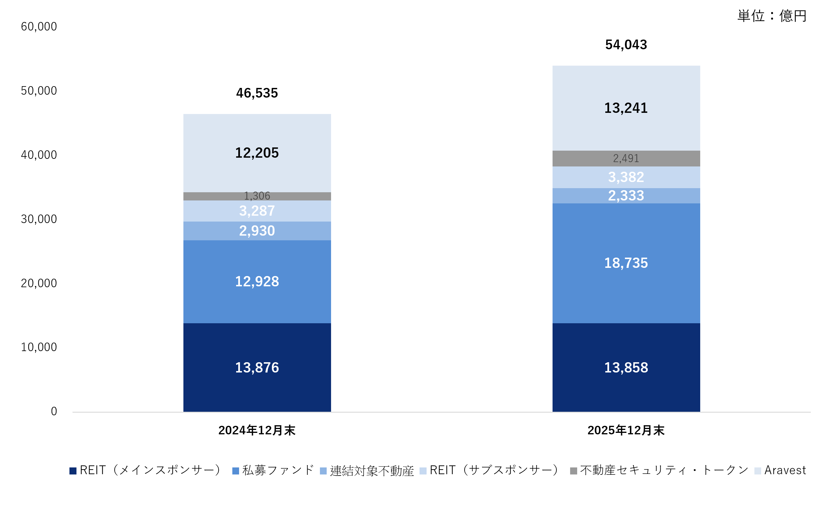 * 当社がメインスポンサーであるREIT、私募ファンド及び不動産セキュリティ・トークンの合計