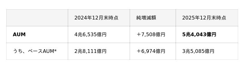 ・当社が一部出資するAravest Pte. Ltd.が直接又は間接に出資する法人等が運用する私募ファンドも含まれており、Aravestと表記しています。なお、2025年12月末時点の当該出資先のAUMは出資先からの報告に基づく暫定値であり、今後の精査によって変動する可能性があります。