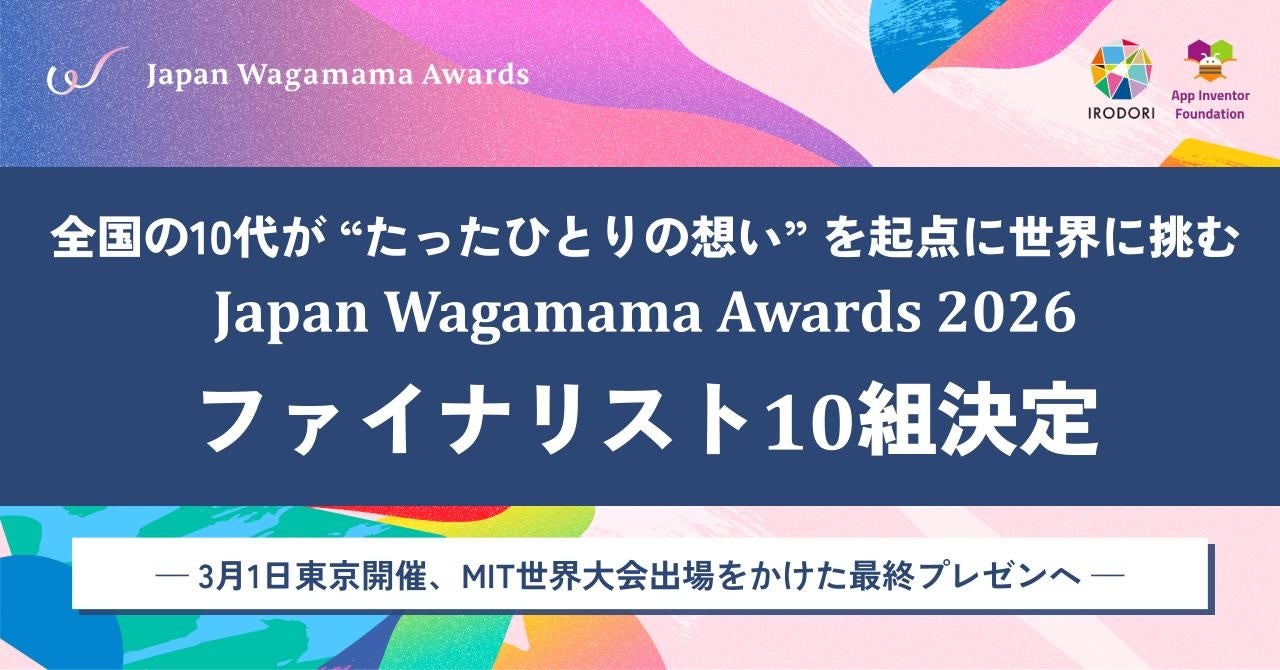 全国の自治体・教育機関・企業と連携し、社会課題解決に向けた実践型教育プログラムを展開する株式会社IRODORI(本社:東京都文京区、代表取締役:谷津孝啓)は、当社が主催し、文部科学省、アメリカ合衆国大使館、32自治体が後援する当社が主催する「Japan Wagamama Awards 2026」において、ファイナリスト10組を決定いたしました。
