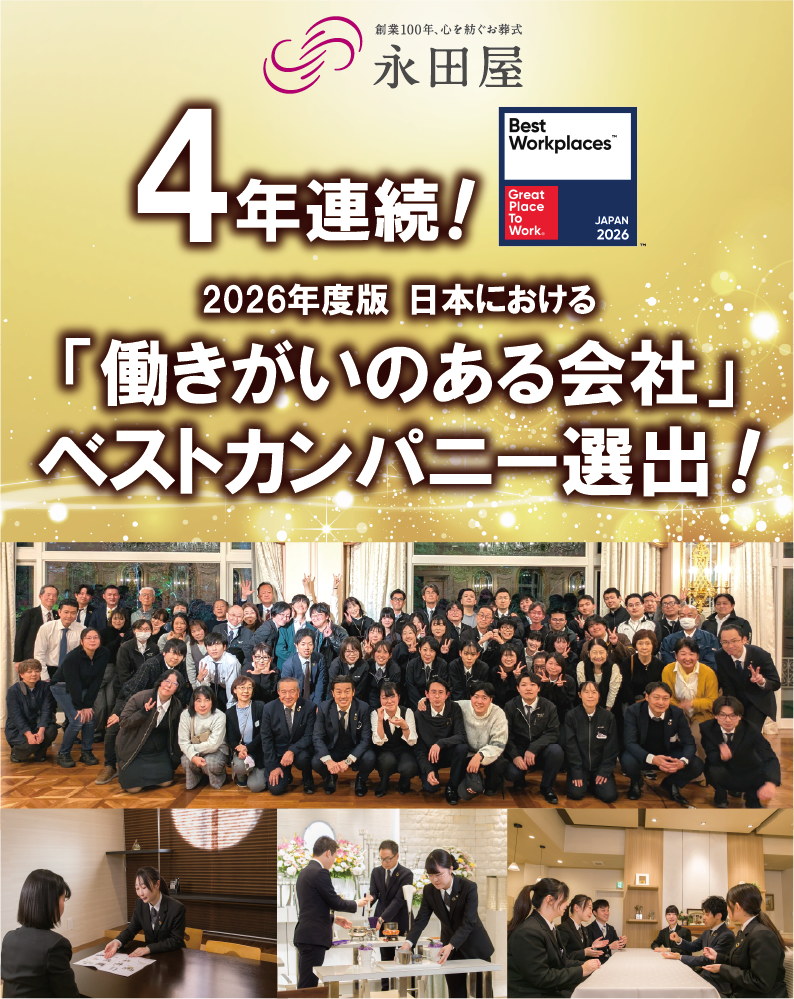 【4年連続】家族葬の永田屋、2026年版「働きがいのある会社」ベストカンパニーに選出!~「三方良し」と「もうひとりの家族のようなおもてなし」を全社員で体現~