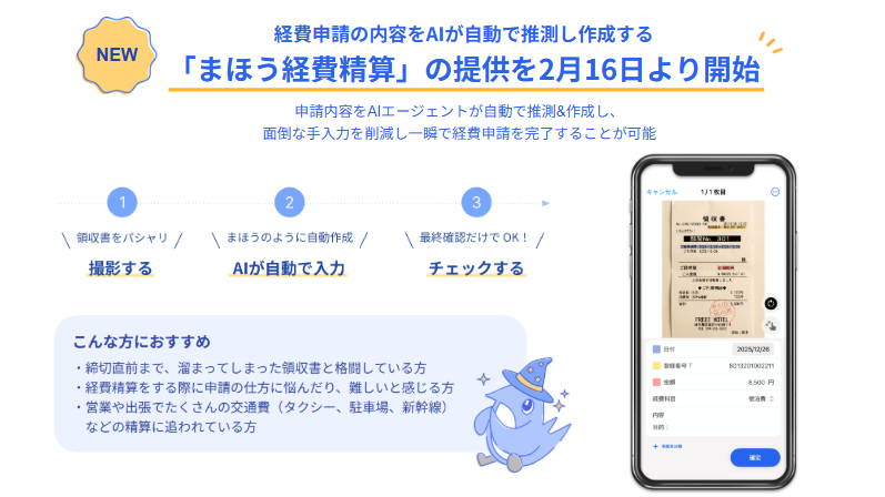 フリー株式会社(本社:東京都品川区、CEO:佐々木大輔、以下「freee」)は、freee経費精算のモバイルアプリで利用できる「まほう経費精算」を2月16日より提供開始します。