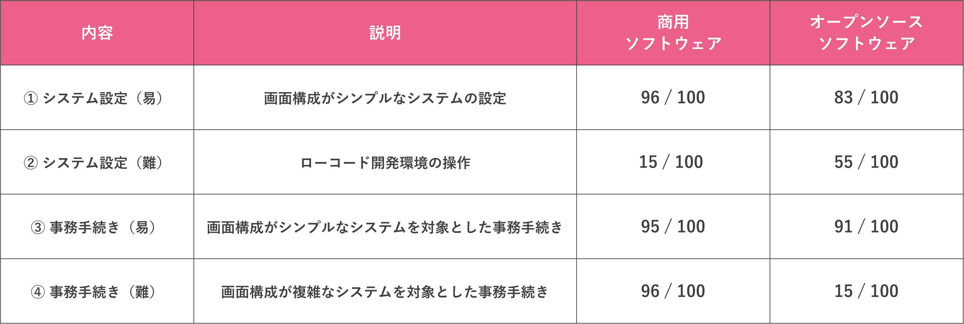 注2 : タスク完了率と事前設定した評価基準に基づき100点満点で評価
