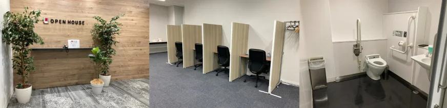 「オープンハウス・オペレーションズ」は、当社グループ内に関連する約120の業務(営業部門の物件登録や大工図面作成等・間接部門の年末調整や経費精算等)を移管し遂行しており、神奈川県横浜市、東京都八王子市、千葉県柏市の3拠点があります。各拠点では、バリアフリー(段差の解消等)・休憩スペース・面談ルーム・多目的トイレなど設備面の配慮だけでなく、専任支援者による定期面談や業務サポート、また、障がいに関わる特別休暇(半日)制度等も導入しております。多様な人材が安定したパフォーマンスを発揮できるよう、環境や制度の整備にも積極的に取り組んでいます。
