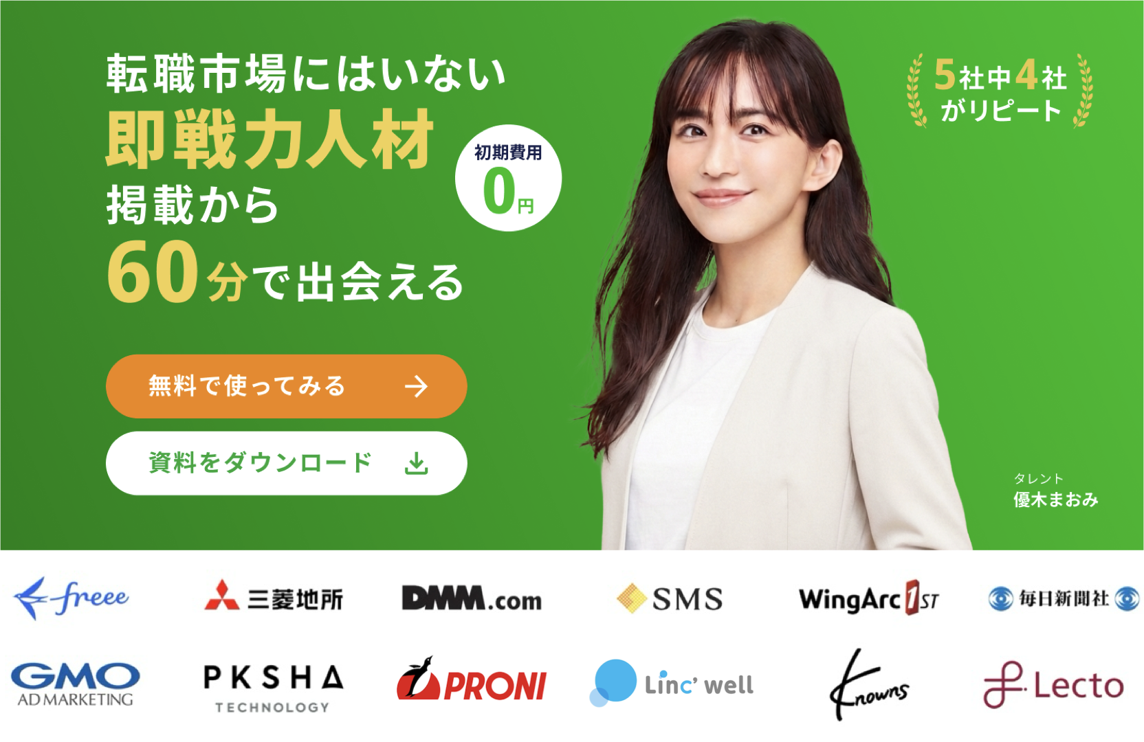 転職マーケットにいない即戦力人材を最短1日で見つけることができる、最速の複業マッチングプラットフォームです。20代後半~40代前半のIT領域に強いエンジニア、マーケター、セールス、BizDev、UI・UXデザイナーの5職種を中心に、最近ではコーポレート人材なども増えております。