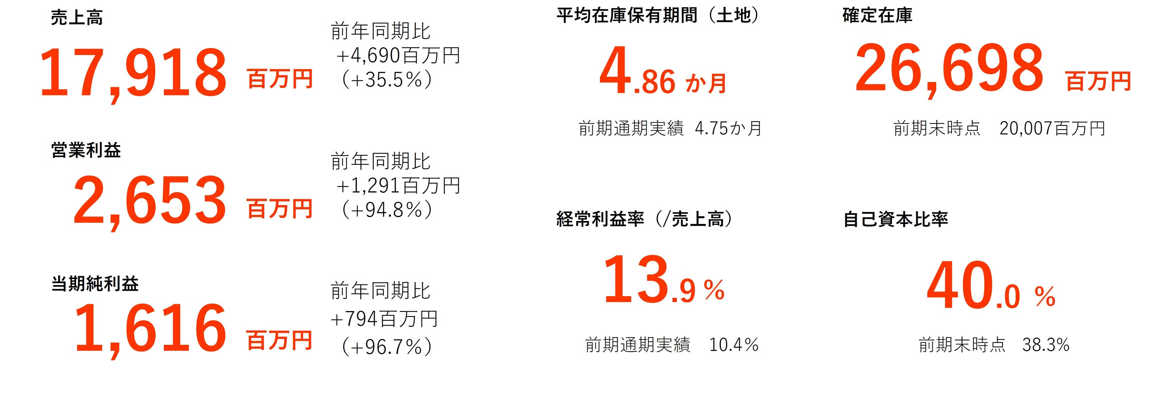 利益水準の高い住宅用不動産を中心に販売が好調であったこと、また、インサイドセールスの強化による営業効率の向上と建築マッチングによるクロスセル収益の増加が寄与したことが大きな要因となり、計画以上の利益着地見込みとなったことから、今期業績の達成確度がさらに高まりました。