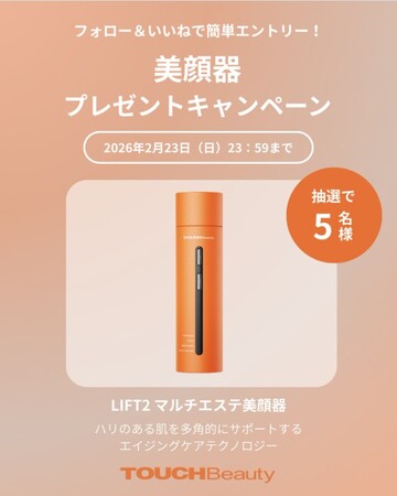 TOUCHBeauty(タッチビューティ)は、公式Instagramアカウント(@touchbeauty_japan)にて、多機能美顔器「LIFT2 マルチエステ美顔器」を抽選で5名様にプレゼントするキャンペーンを実施します。フォロー&いいねに加え、コメントで当選確率がアップ。毎日のホームケアに取り入れやすい1台を、この機会にぜひお試しください。