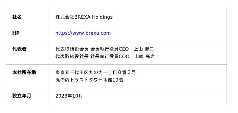株式会社BREXA Holdings コーポレートブランディング室Email :pr@brexa.com