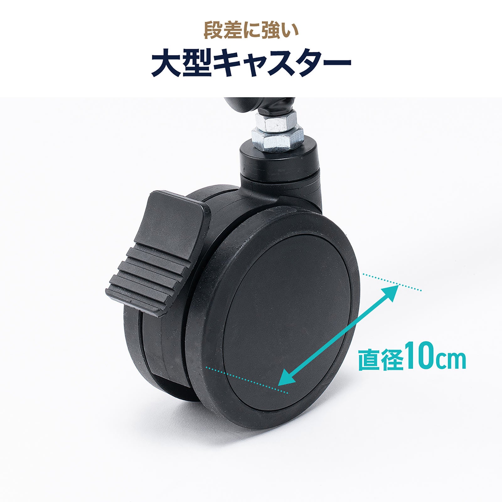 ●移動も固定も安定する、大型キャスター仕様