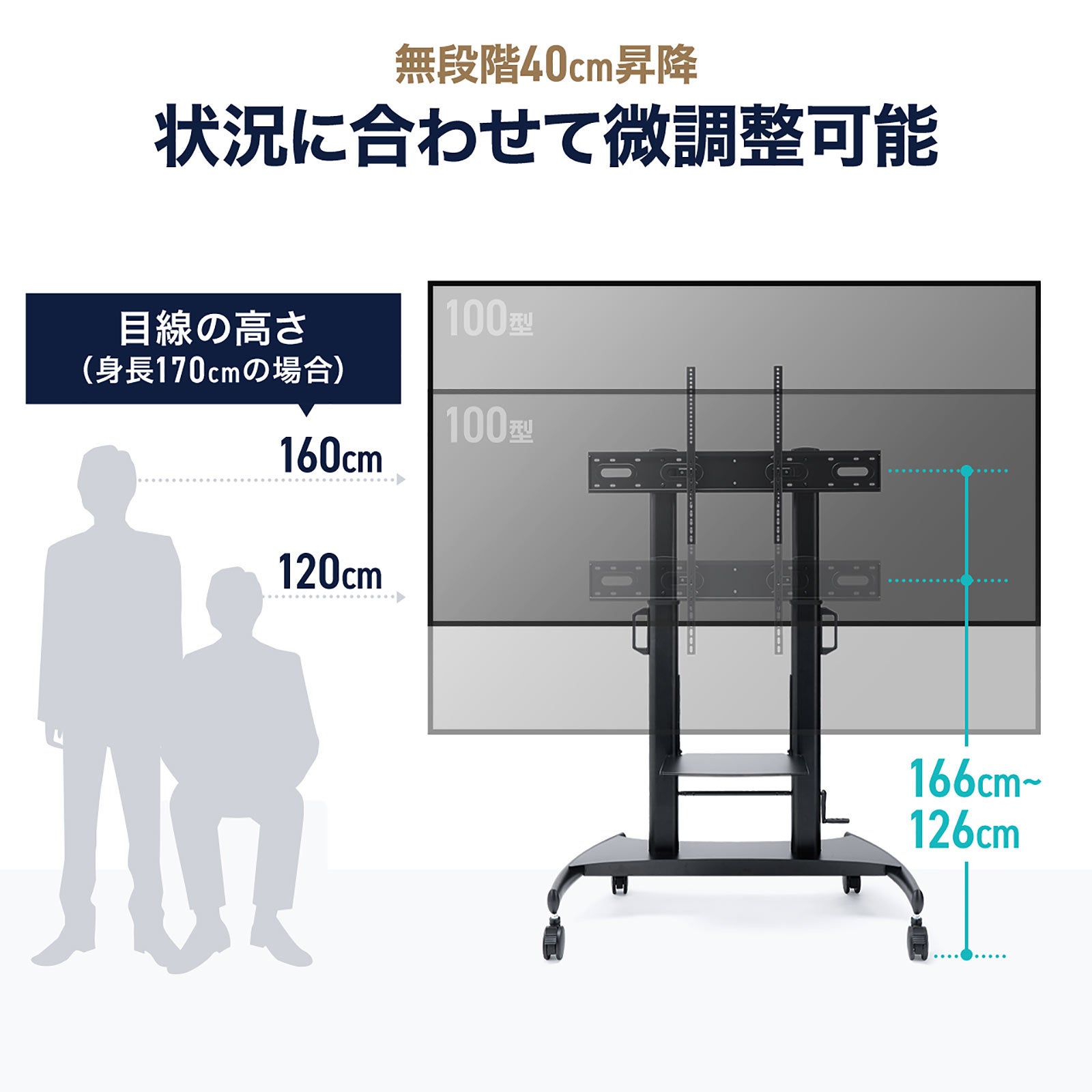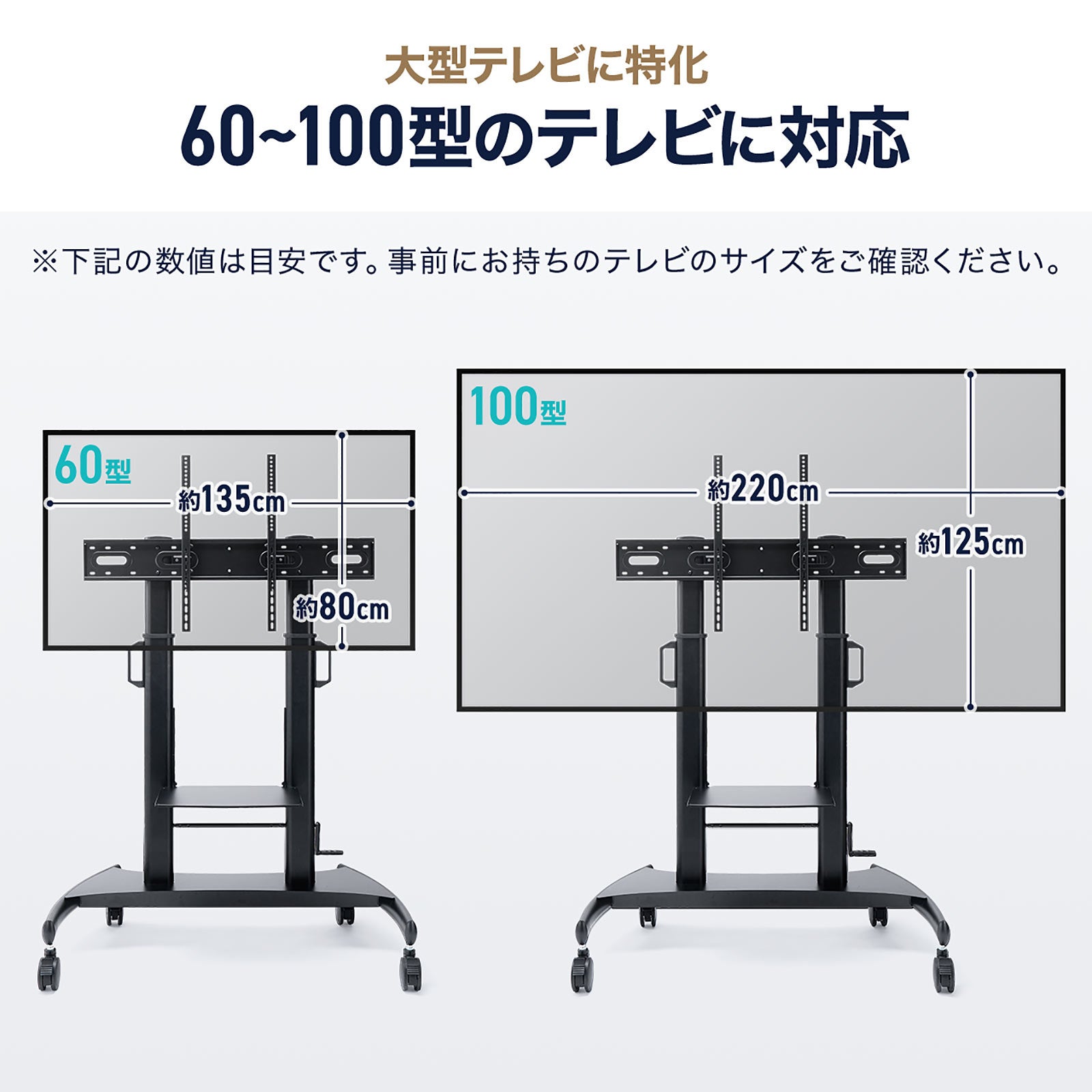 100インチ対応、設置後も高さ調整できる大型テレビスタンドを発売