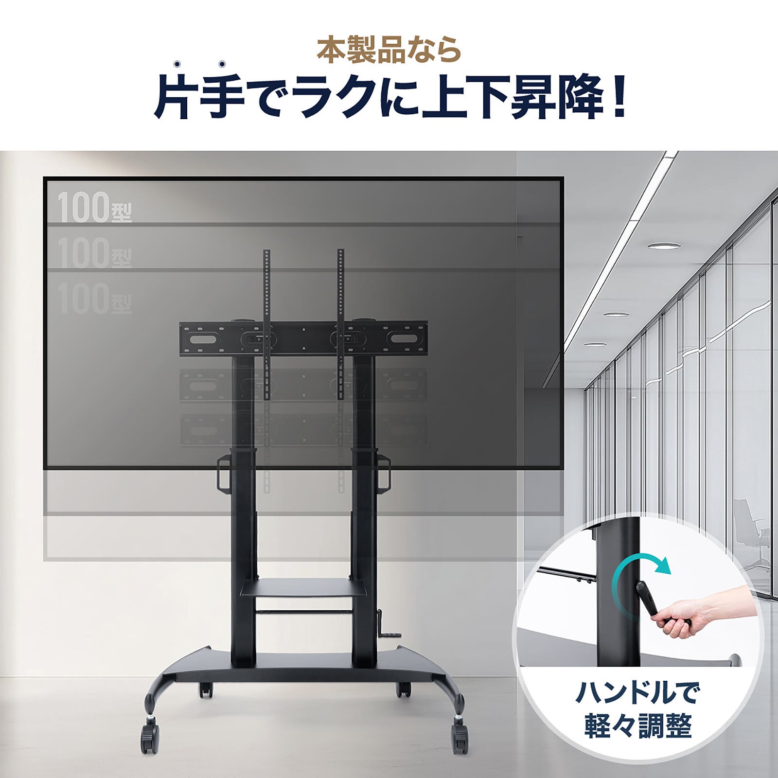 - ディスプレイ装着後でも上下昇降が可能な手動ハンドル式