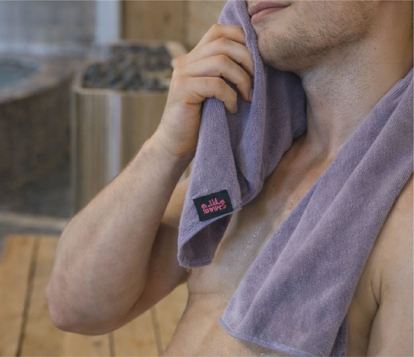 汗や水分をすばやく吸い取り、運動中やシャワー後でも、肌をさっと拭くことができます。