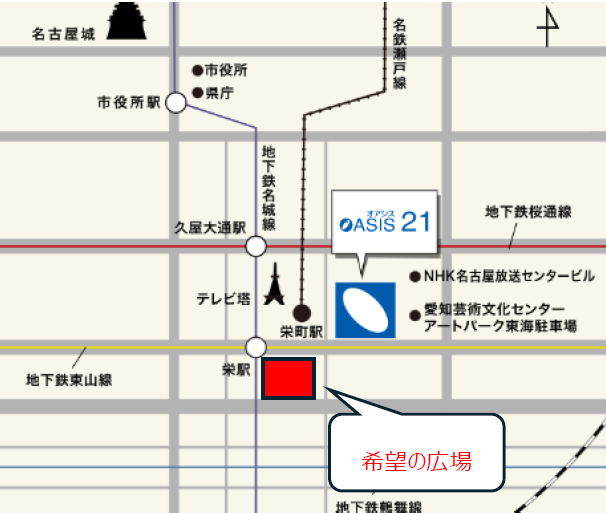 - アクセス:最寄り駅 「地下鉄東山線・名城線 栄駅」 「名鉄瀬戸線栄町駅」直結