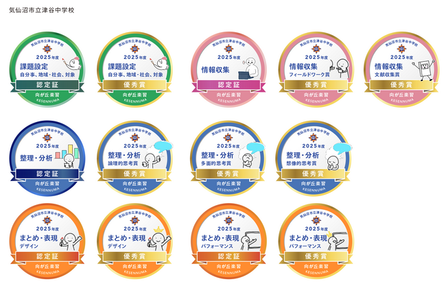 テストでは測れない「探究のプロセス」を評価するために津谷中学校では、「創造的で、自律し、対話・協働で進む生徒の育成」を教育目標に掲げ、個別最適な学びの一環として、生徒が自ら課題を設定する個人探究学習「向が丘楽習」に注力しています。 しかし、従来の評価手法では、探究学習における「課題設定」「情報の収集」「整理・分析」「まとめ・表現」といったプロセスや、生徒の主体的な頑張りを適切に評価・可視化することが難しいという課題がありました。そこで、スキルや学習成果をデジタル上で証明できる国際技術標準規格「オープンバッジ」を導入し、新たな評価手法の確立を目指しました。