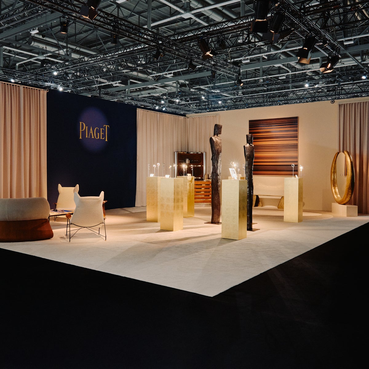 アート・ジュネーブにおいて、ピアジェは彫刻的な領域で存在感を示しました。ブースのセノグラフィーは、デザイン、アート、クラフツマンシップが交差する新世代のクリエイターを体現する若手フランス人デザイナー、Jeremy Pradier-Jeauneauが構想しました。彼は、まるでそれ自体が一つの作品であるかのような空間を作り上げました。時を具現化したようなその空間は、コンテンポラリーなコレクティブルデザインの最高峰として知られるエクセプショナル ピースのキュレーションに着想を得ています。