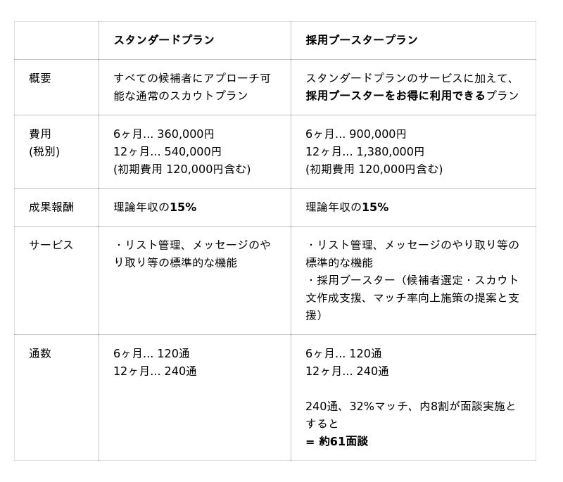 ※ 採用ブースタープランは初回価格です。契約更新後は6ヶ月が1,320,000円、12ヶ月が2,100,000円となります