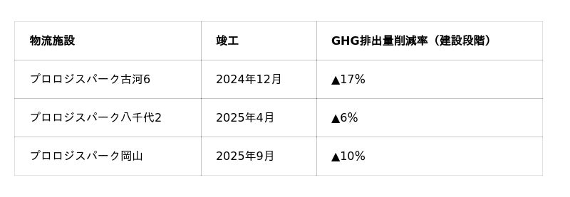HAZMAT倉庫8棟からなる物流施設「プロロジスパーク古河6」:建設段階(A1-A5)のLCA算定結果で17%の温室効果ガス排出量削減を達成した