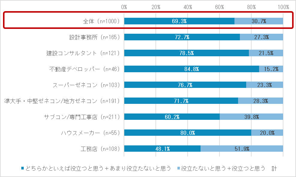 - BIMは技術継承に「役立つ」69.3%と評価。一方で「役立たない」30.7%も存在し、教育時間不足や標準化の遅れが否定的認識の背景に。 [調査3.]