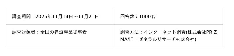 野原グループのBuildApp総合研究所(所在:東京都新宿区、代表:山梶真司)は、建設業界の2024・2025年問題の受け止めと、施工BIMの活用実態を横断的に把握するため、全国の建設従事者1,000名を対象に意識調査を実施しました(2025年11月14日~21日、インターネット調査)。