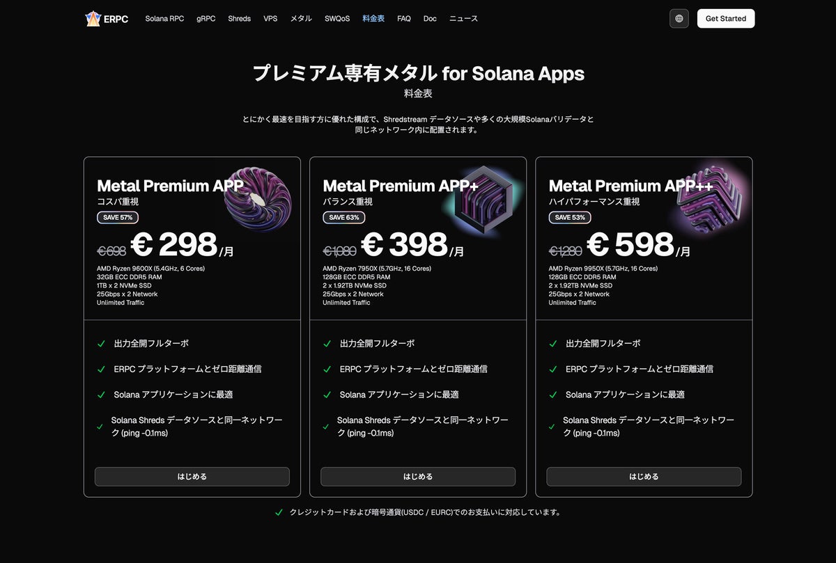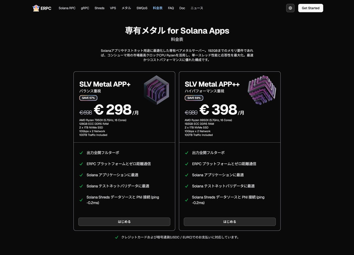 コストパフォーマンスに優れた高性能構成を Solana ネットワーク上に直結できる環境として、ご利用者の方々から高い評価をいただいてまいりました。