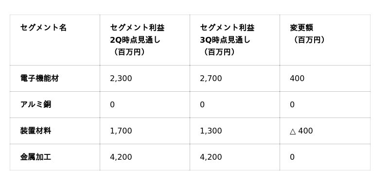 - 但し、第3四半期までの進捗状況を鑑み、利益見通しのセグメント別内訳を再度見直し