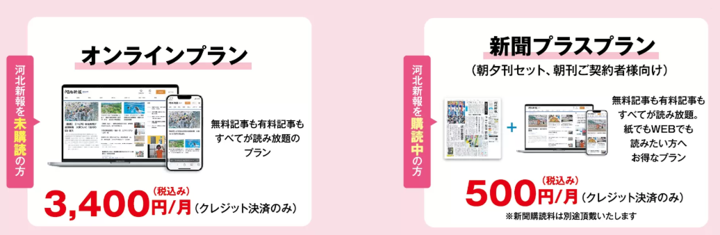 新聞プラスプラン(月額 500円/税込) 河北新報本紙をご購読中の方向け。紙面の愛読者にプラスのデジタル体験を提供します。