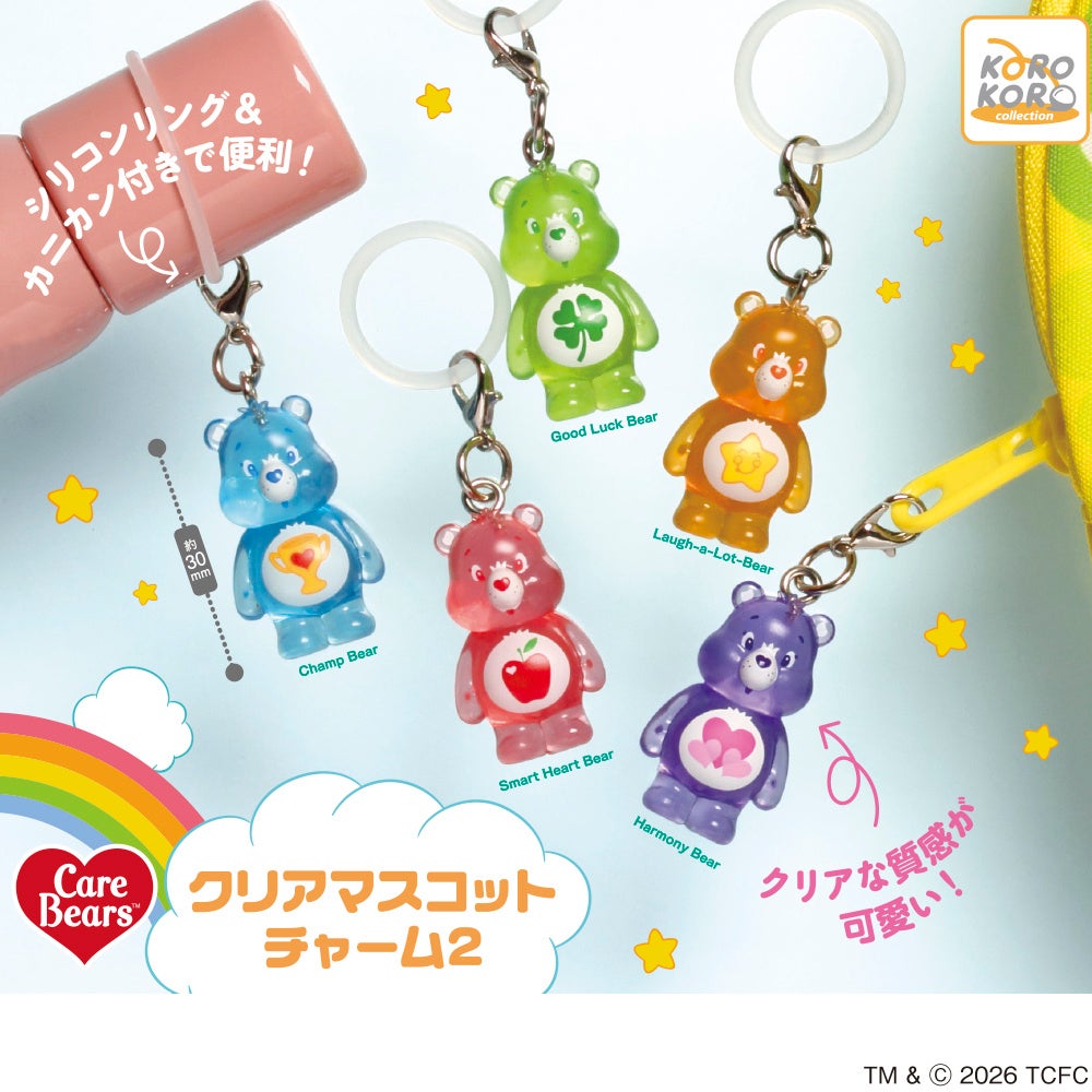 アイピーフォー株式会社(本社:東京都豊島区、代表取締役社長:小濱 剛)は、「ケアベア(TM) クリアマスコットチャーム2」(1回300円・税10%込、全5種)を2026年2月下旬から順次、全国のカプセルトイコーナーにて発売予定です。