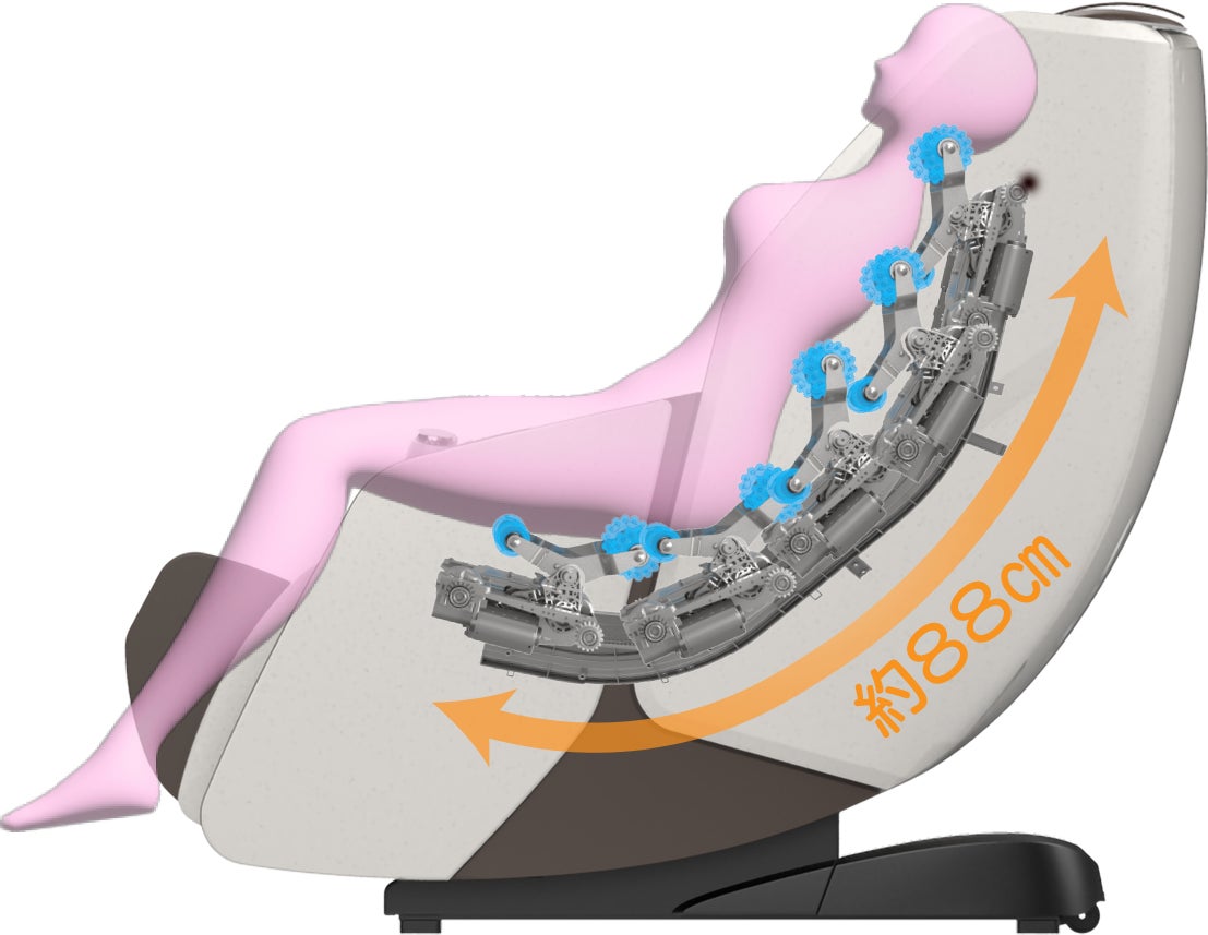 ■首からお尻までをなめらかにほぐす最大153°までリクライニング可能なシートと、約88cmのロングストロークを実現したL字フレーム構造。首からお尻までをしっかりとケアし、全身をなめらかにほぐしてくれます。心地よいマッサージの動きで、ゆったりとしたリラックスタイムをお楽しみいただけます。